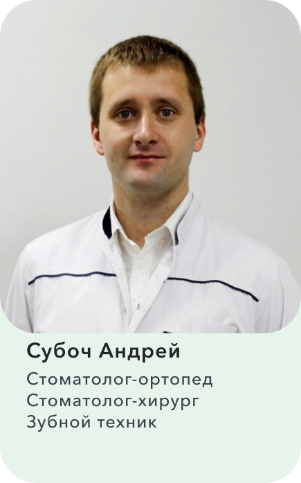 Обратилась в клинику после того, как сломала зуб.сложность была в том, что сломала глубоко в десне. В другой клинике сказали, что зуб не спасти и нужно удалять. Знакомая посоветовала обратиться к доктору Субоч А.Г.,он изготовил мне коронку. Тем самым спас мой зуб и все обошлось без удаления. Спасибо!